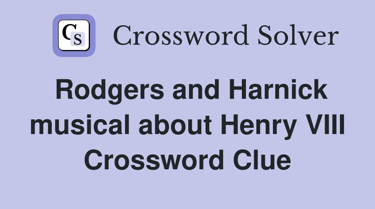 Rodgers and Harnick musical about Henry VIII Crossword Clue Answers