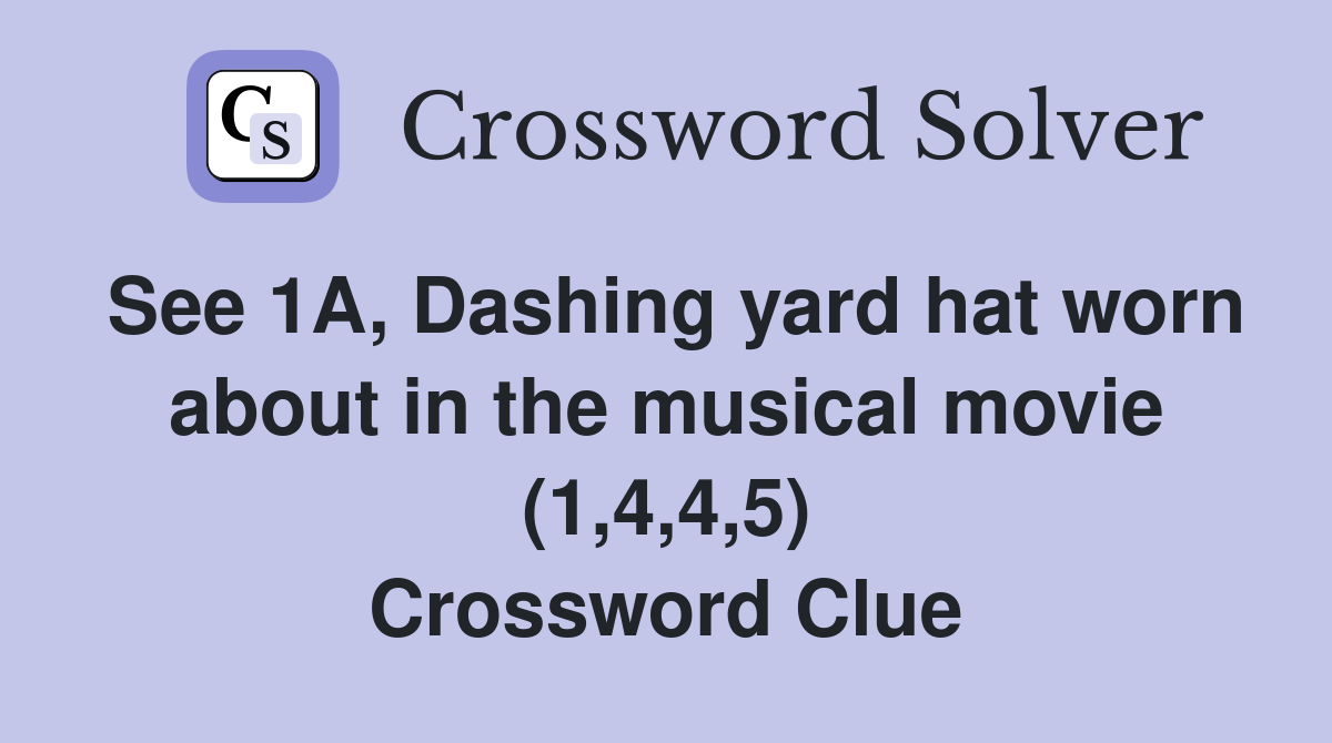See 1A Dashing yard hat worn about in the musical movie (1 4 4 5