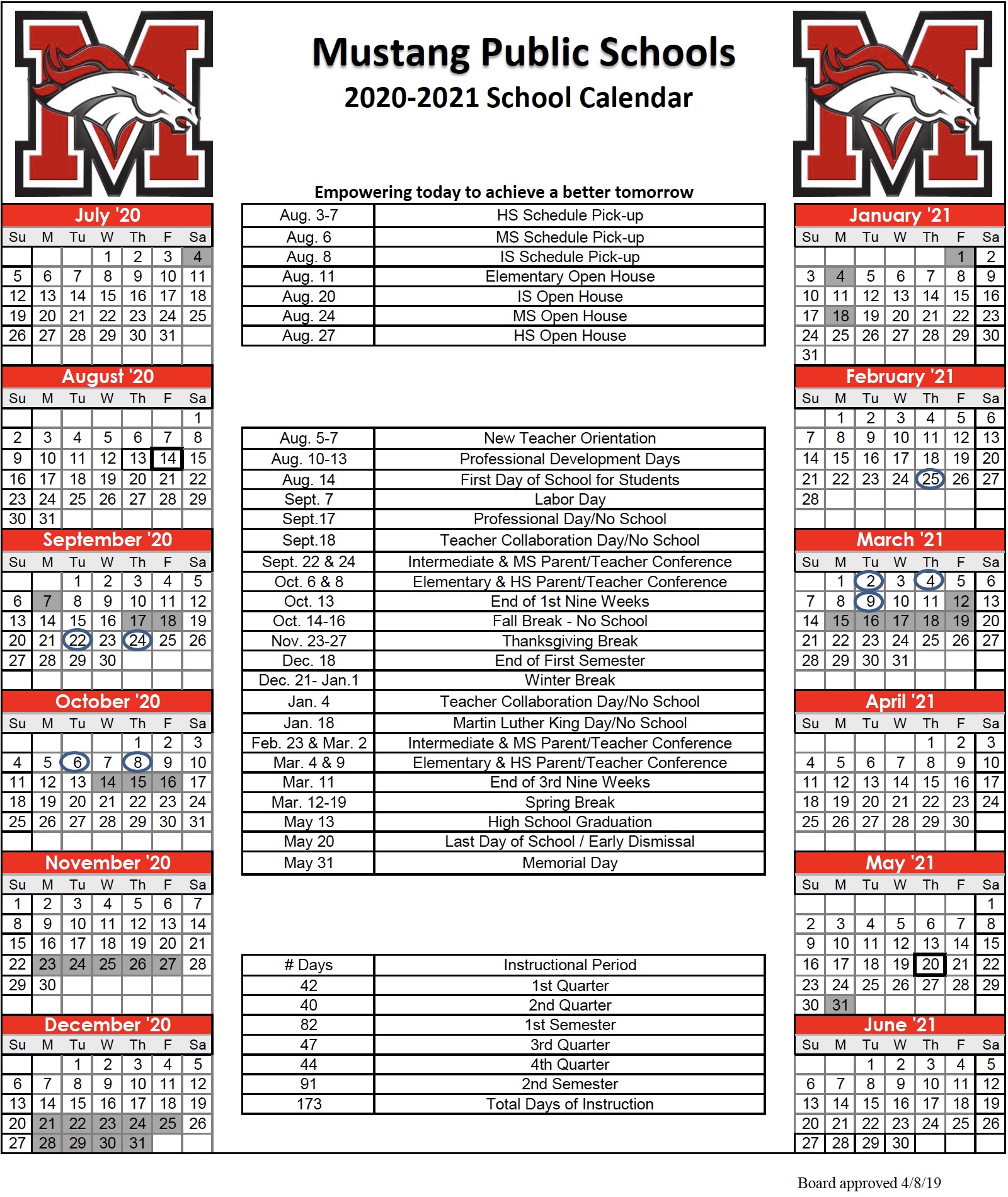 Mustang Schools Calendar prntbl concejomunicipaldechinu gov co