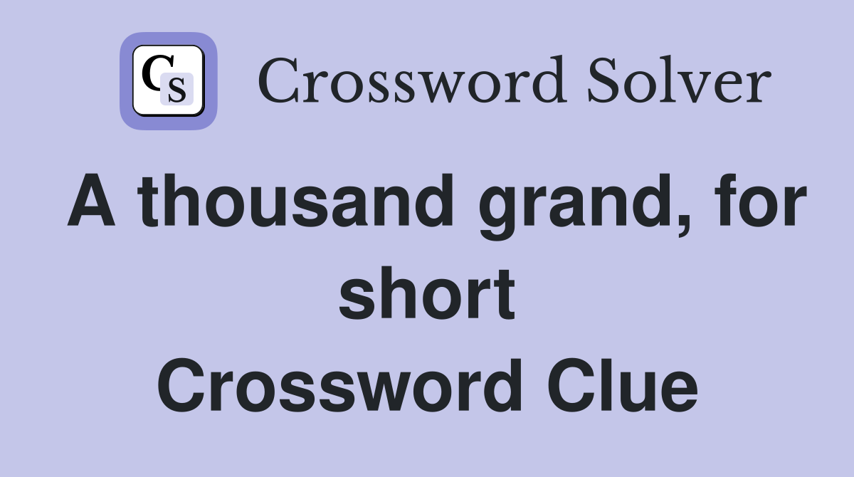 A thousand grand for short Crossword Clue Answers Crossword Solver
