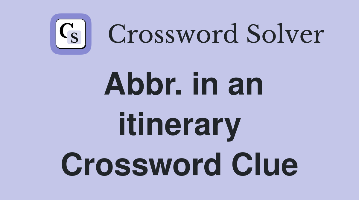 Abbr in an itinerary Crossword Clue Answers Crossword Solver
