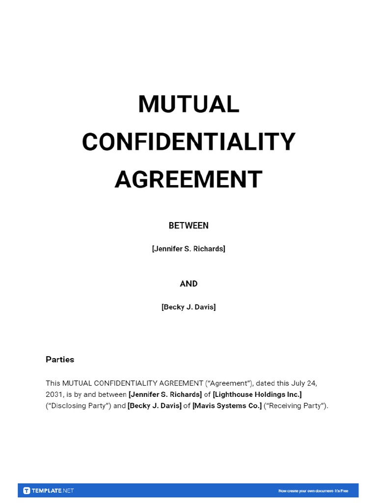 Mutual Confidentiality Agreement Template Google Docs Word Apple