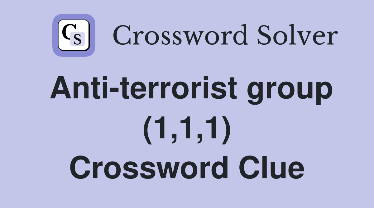 Anti terrorist group (1 1 1) Crossword Clue Answers Crossword Solver