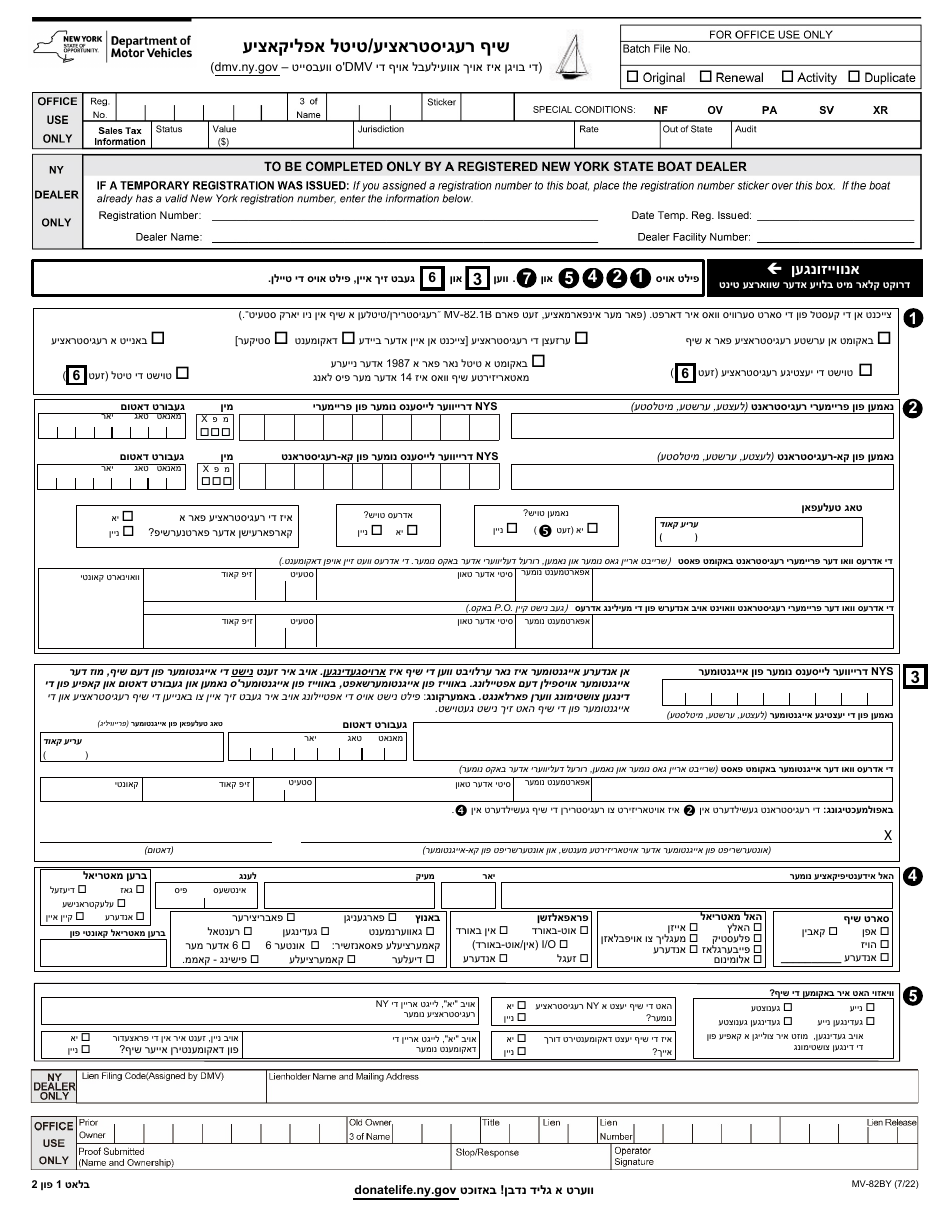Form MV 82 NY Vehicle Registration/Title Application Forms Docs 2023