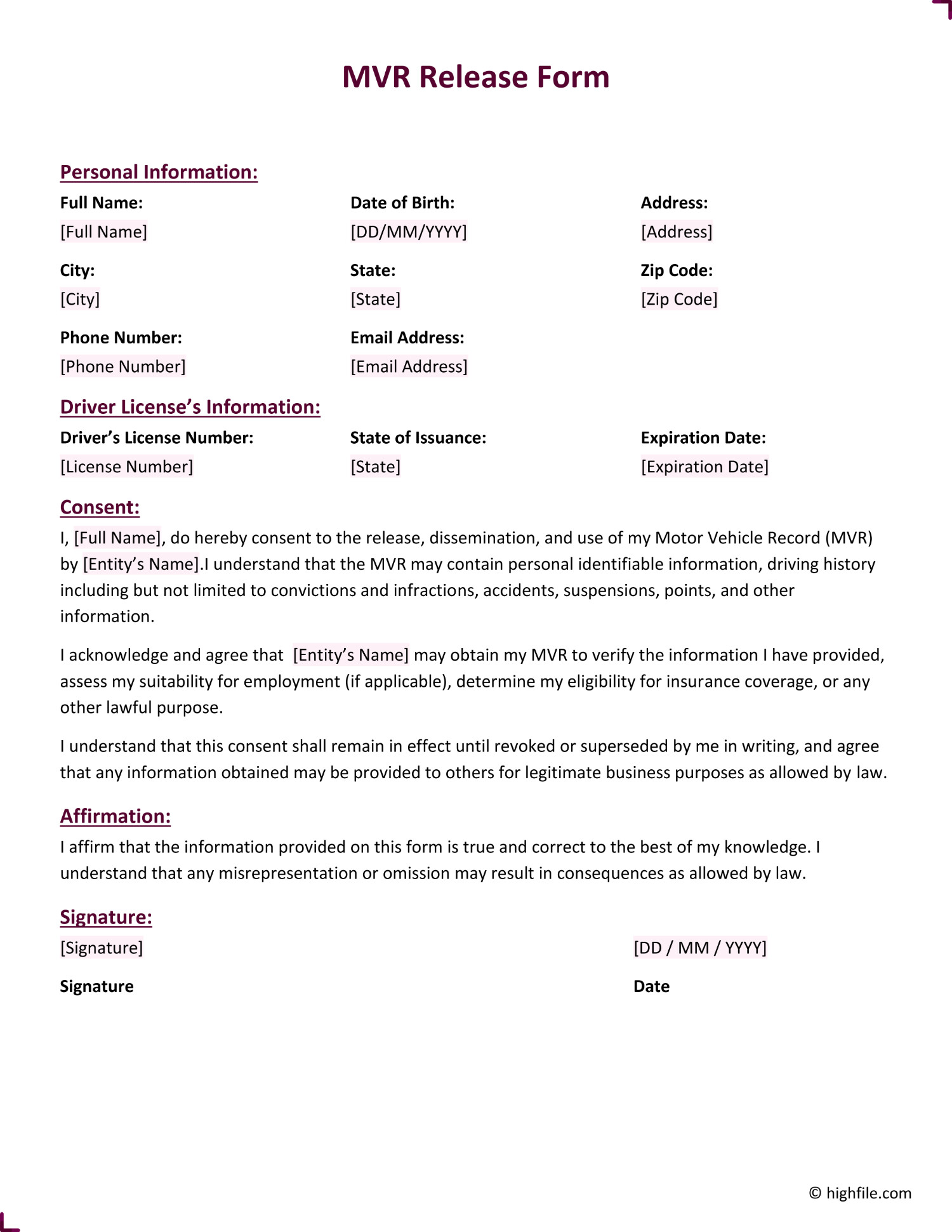 Fillable Online MVR Consent Form WordPDFGoogle Docs Highfile Fax