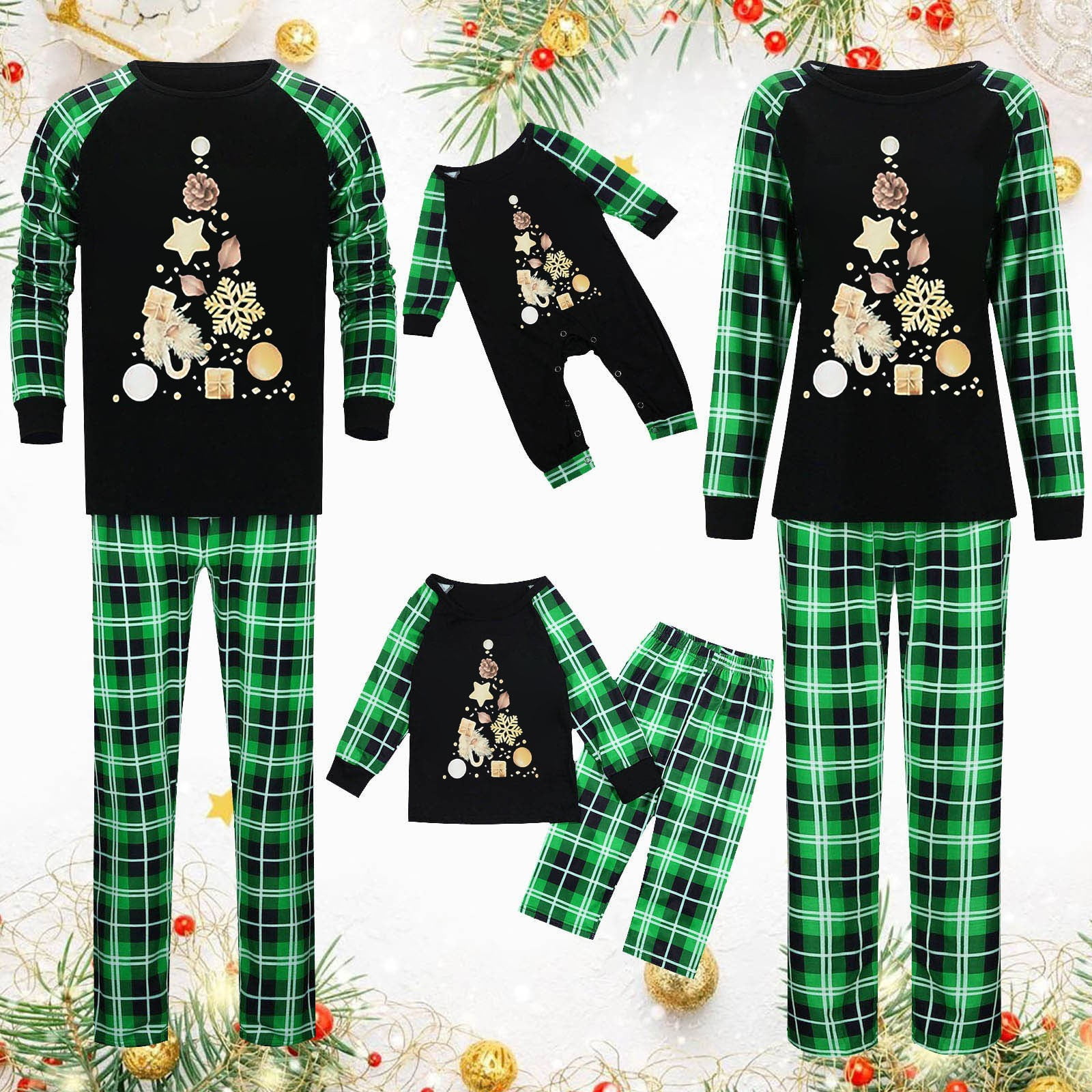 CFLVAEK Xmas Matching Pajamas Onesies for Family Christmas Tree Print
