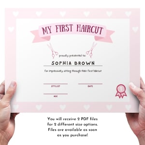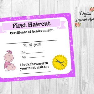 First Haircut Certificate Diploma Template for Hairdresser Etsy