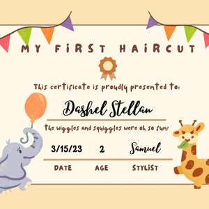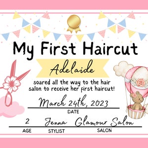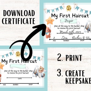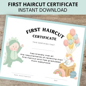 First Haircut Certificate Printable Digital Download Hair Saloon