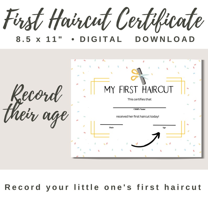 My First Haircut Certificate Baby Milestone Keepsake Etsy