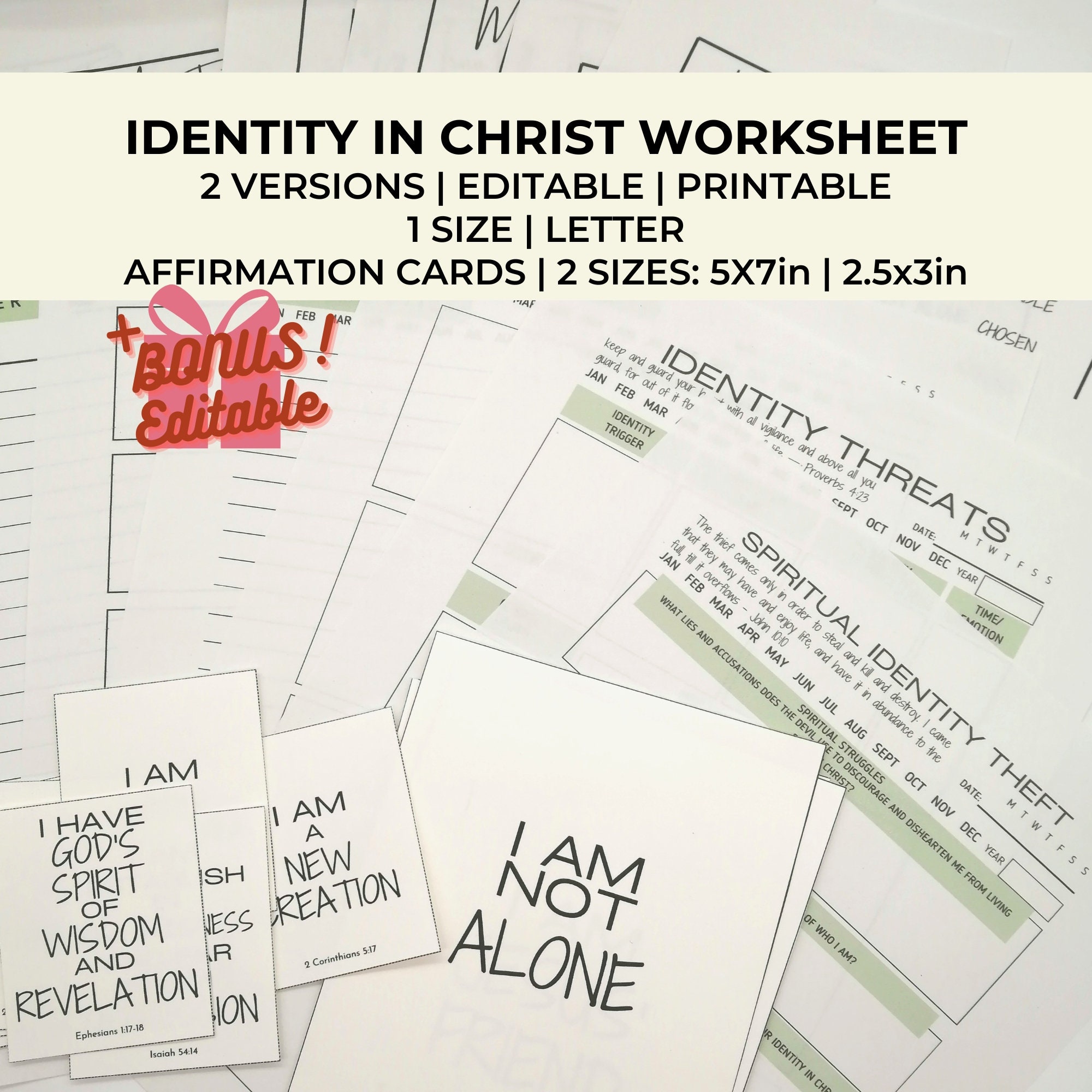 Identity in Christ Printable Worksheet Editable Worksheet Affirmation