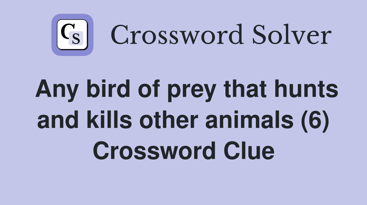 Any bird of prey that hunts and kills other animals (6) Crossword
