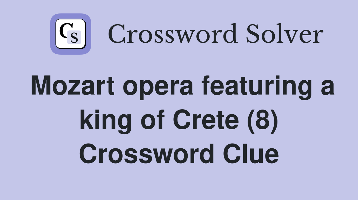 Mozart opera featuring a king of Crete (8) Crossword Clue Answers