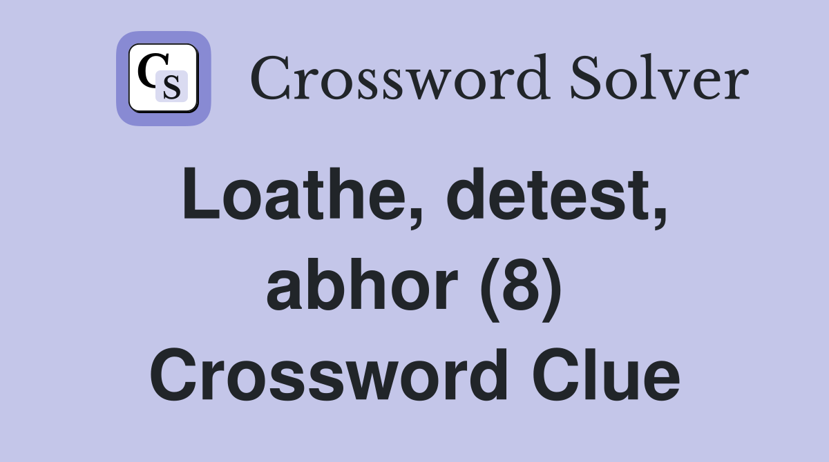 Loathe detest abhor (8) Crossword Clue Answers Crossword Solver