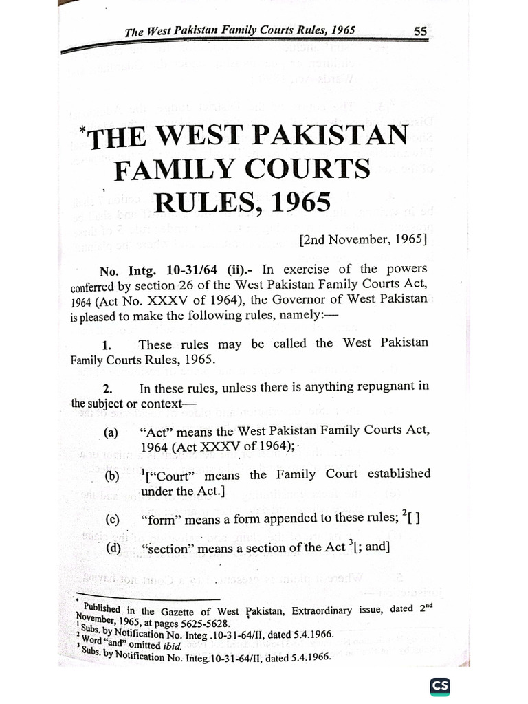 The West Pakistan Family Court Rules 1965 PDF