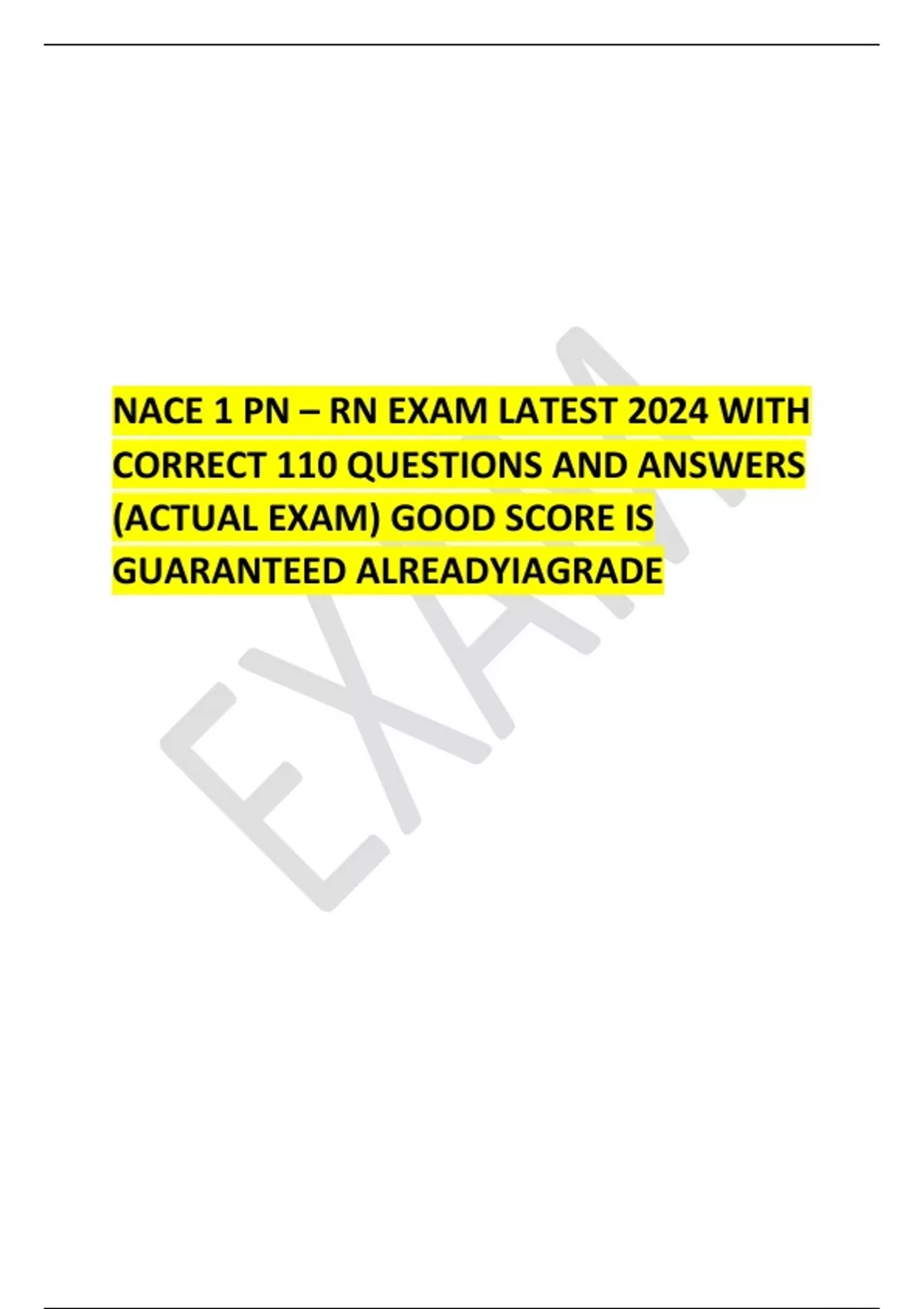 NACE 1 PN RN EXAM LATEST 2024 WITH CORRECT 110 QUESTIONS AND ANSWERS