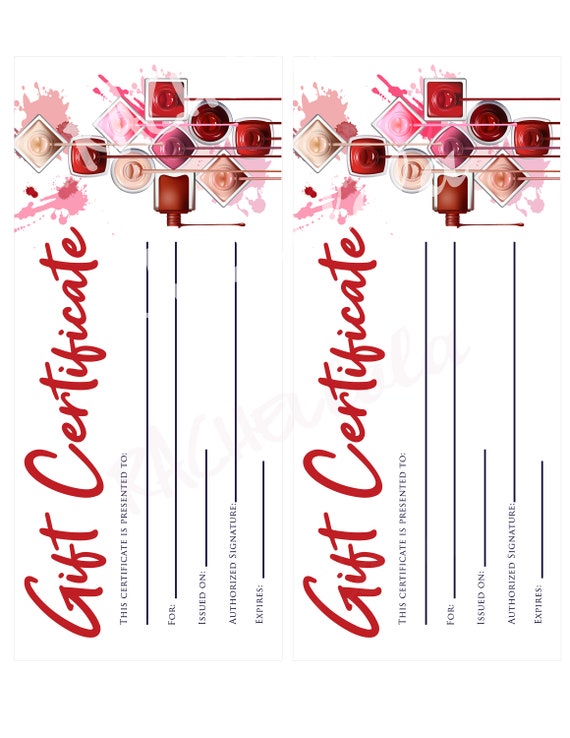 Printable Nail Salon Gift Certificate Fillable Template Manicure