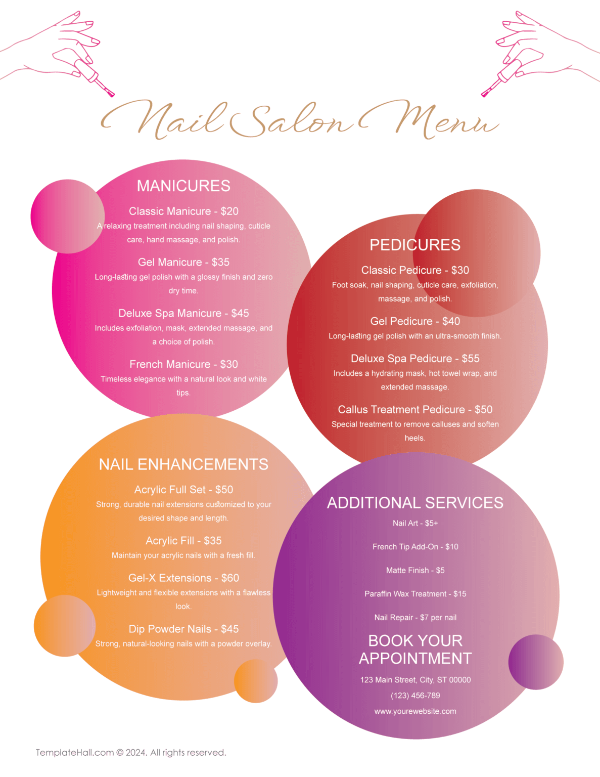 4 Printable Nail Salon Menu Templates PDF Word G Docs AI