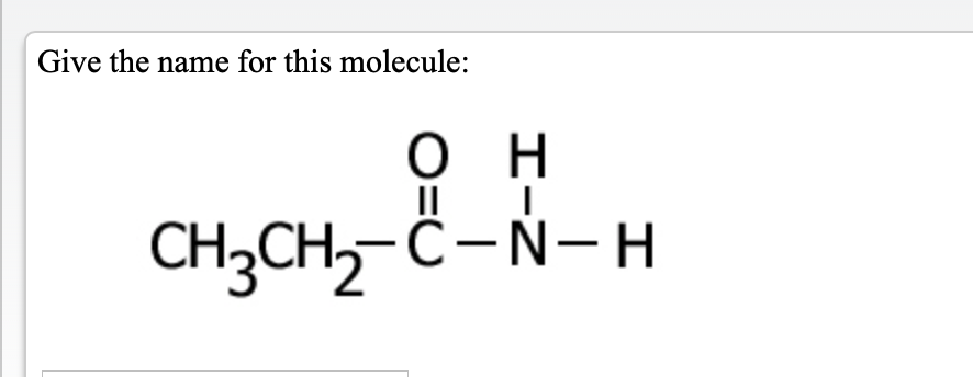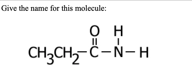 Solved Give the name for this molecule: 0 H II CH3CH2 C N H Chegg com