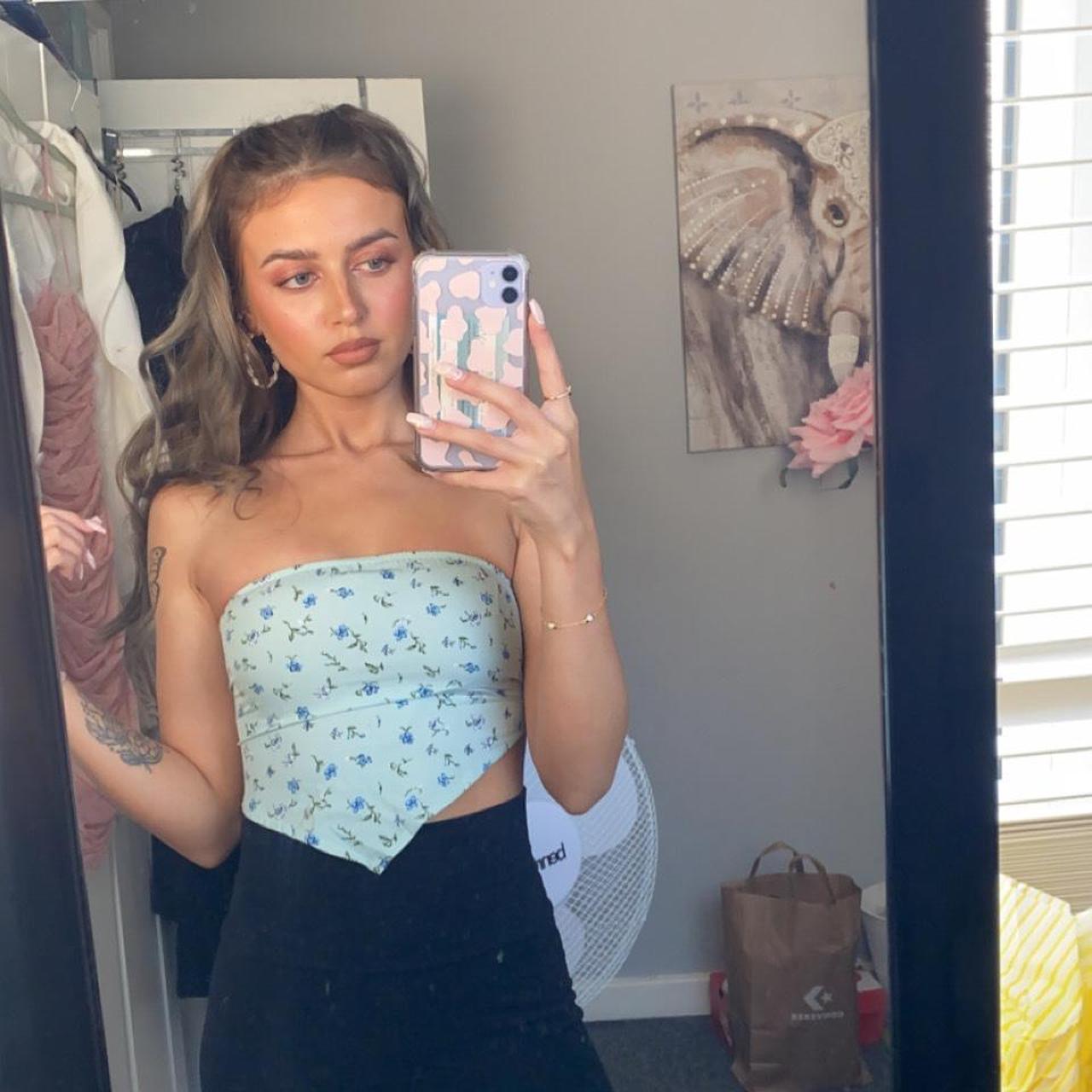 Motel rocks mint flower bandeau crop Worn once and Depop