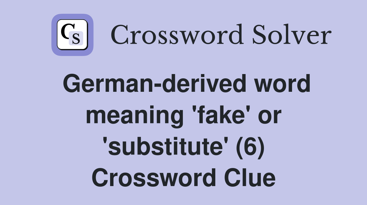 German derived word meaning #39 fake #39 or #39 substitute #39 (6) Crossword Clue