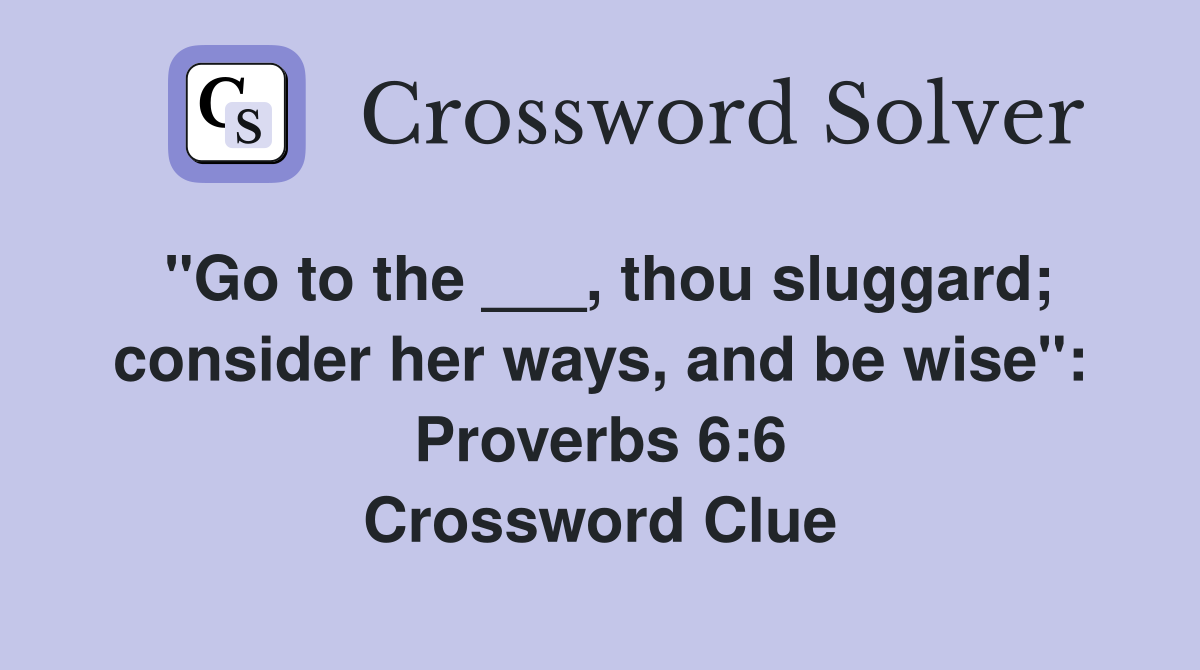 quot Go to the thou sluggard consider her ways and be wise