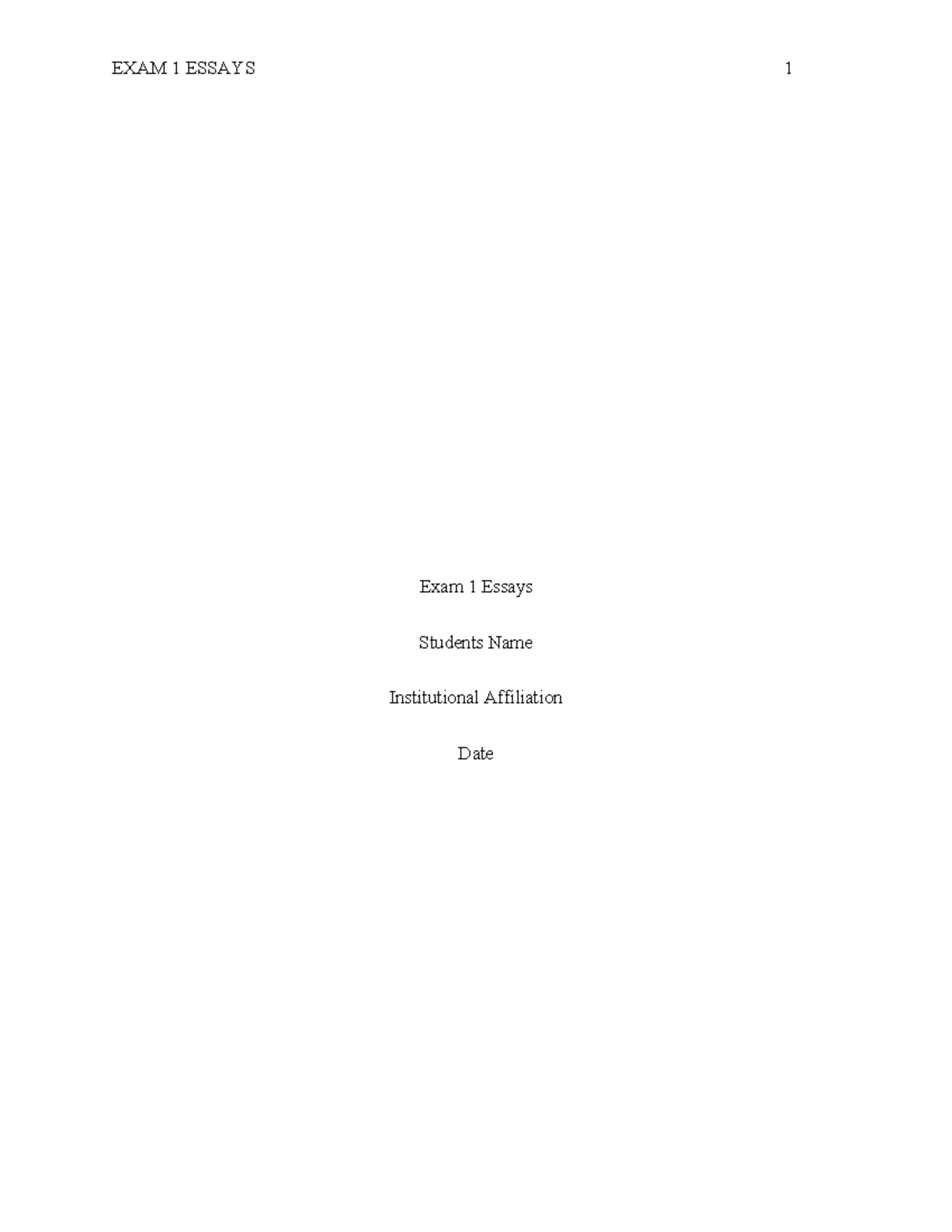 Exam 1 Essays Answers Exam 1 Essays Students Name Institutional