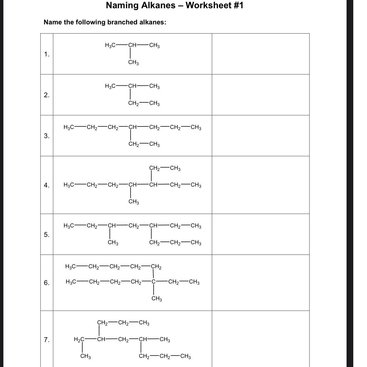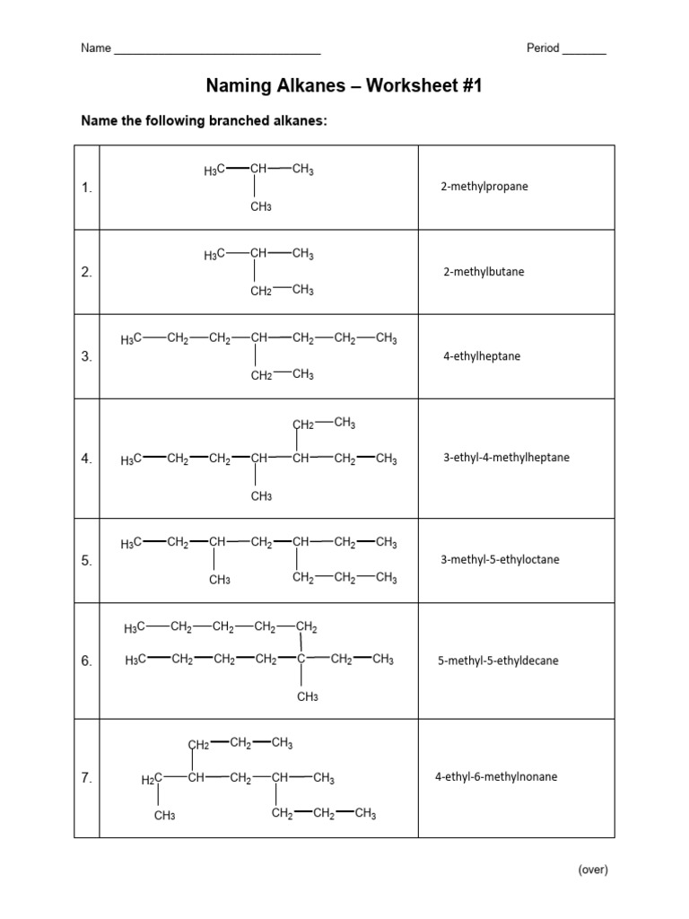 Worksheet #1 Naming Alkanes PDF Worksheets Library