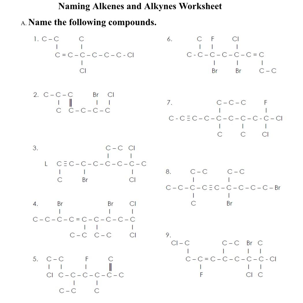 Alkanes Alkenes Alkynes Naming Worksheet