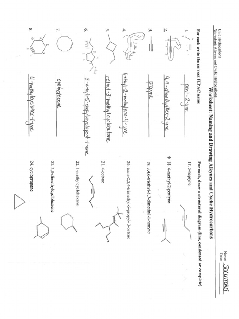 OC02 Alkenes Alkynes and Cyclic Hydrocarbons Worksheet