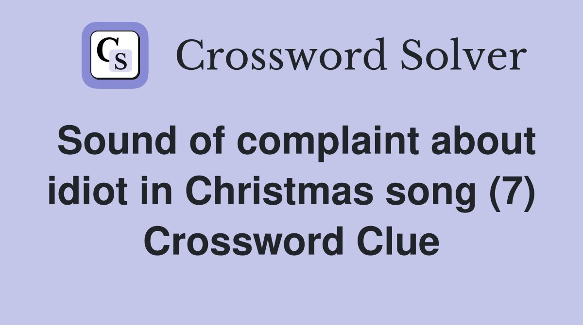 Sound of complaint about idiot in Christmas song (7) Crossword Clue