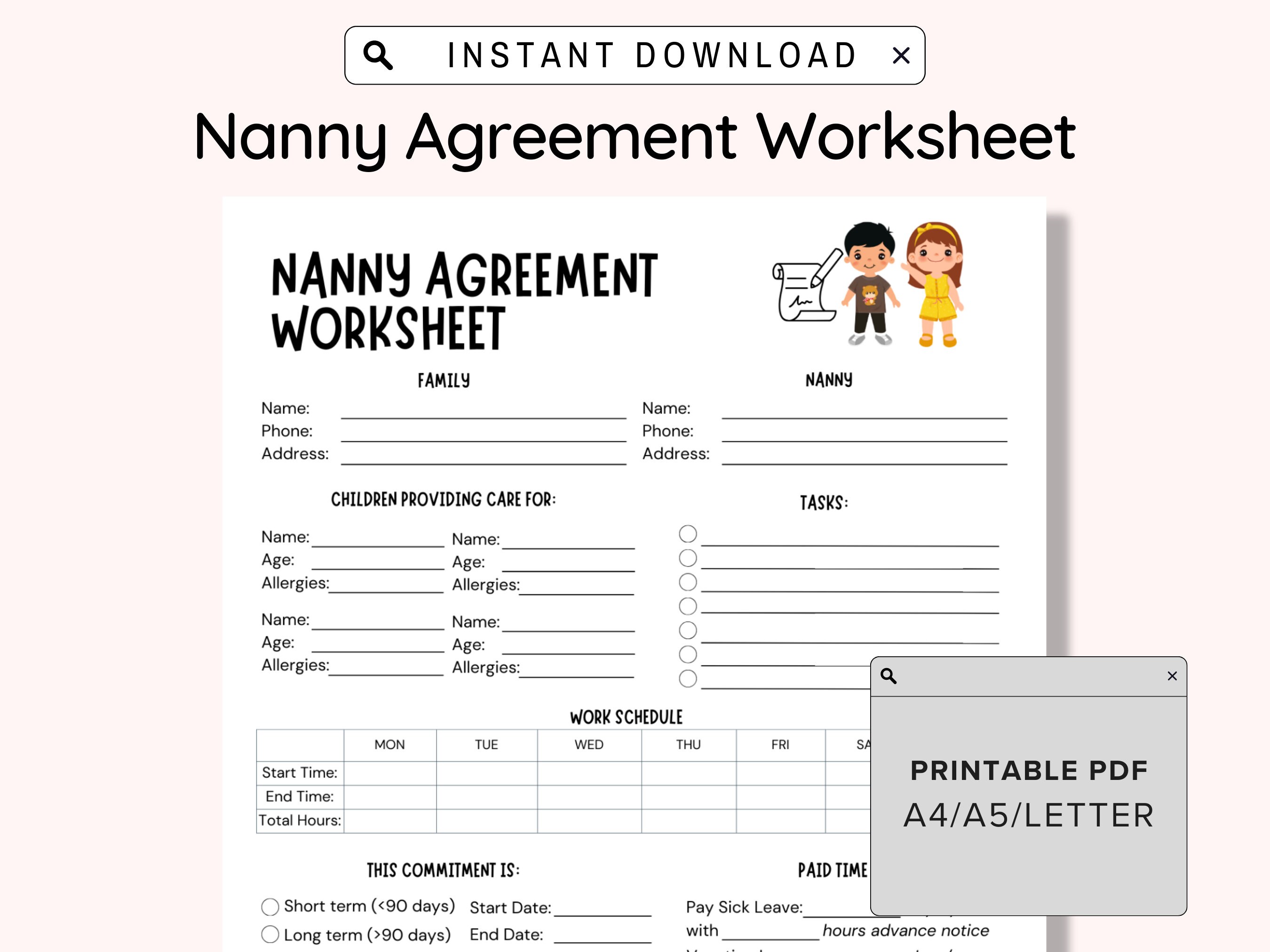 Nanny agreement worksheet nanny contract nanny agreement nanny planner