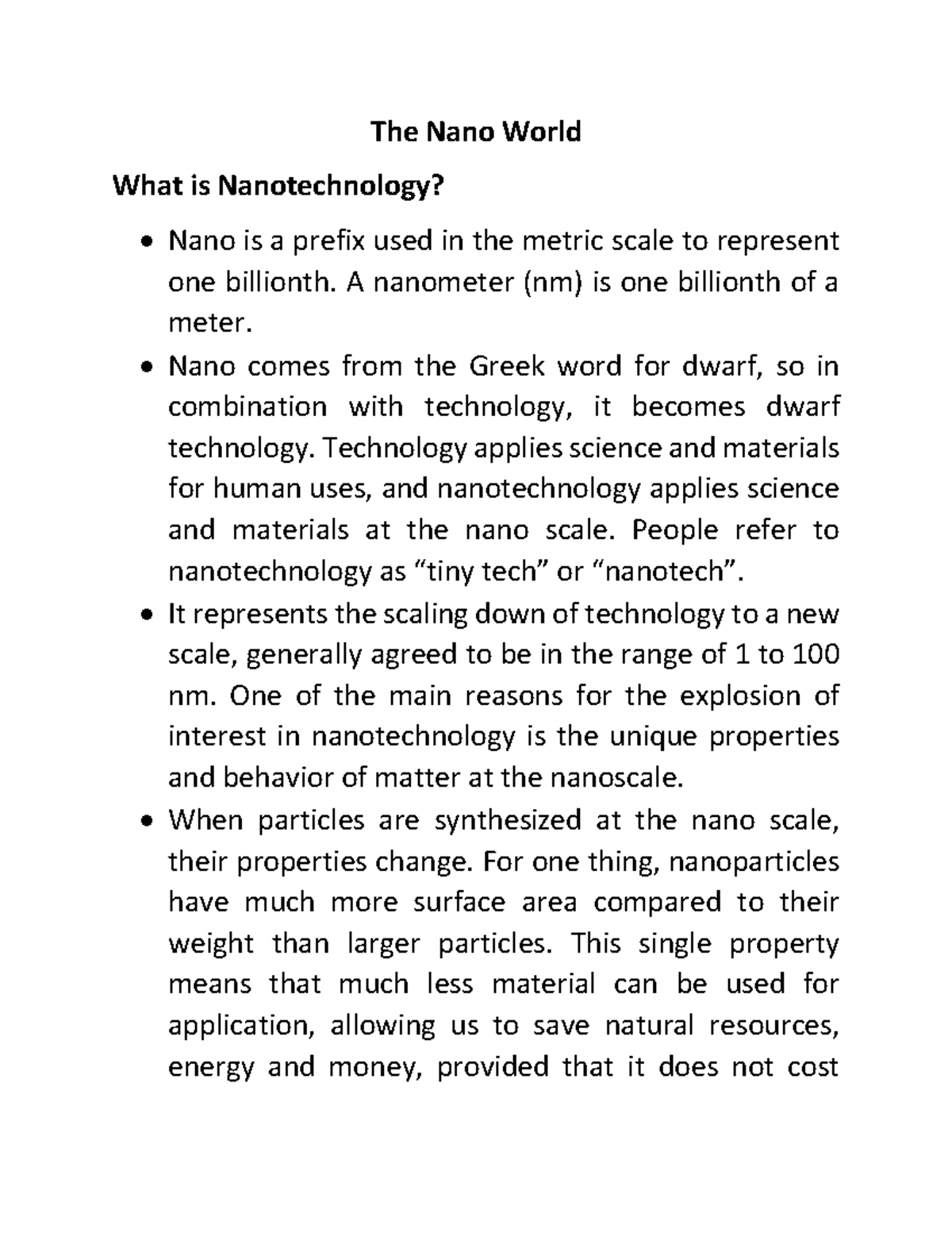 The Nano World The Nano World What is Nanotechnology? Nano is a