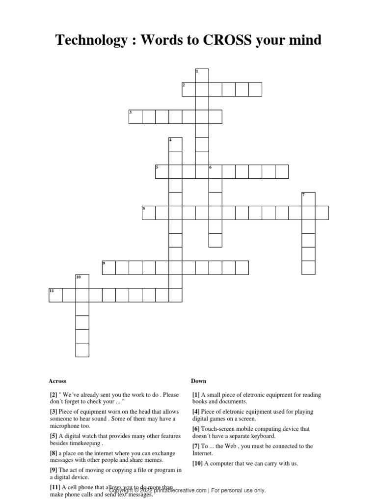 19 Technology Crossword Puzzles with Answers ProProfs Games