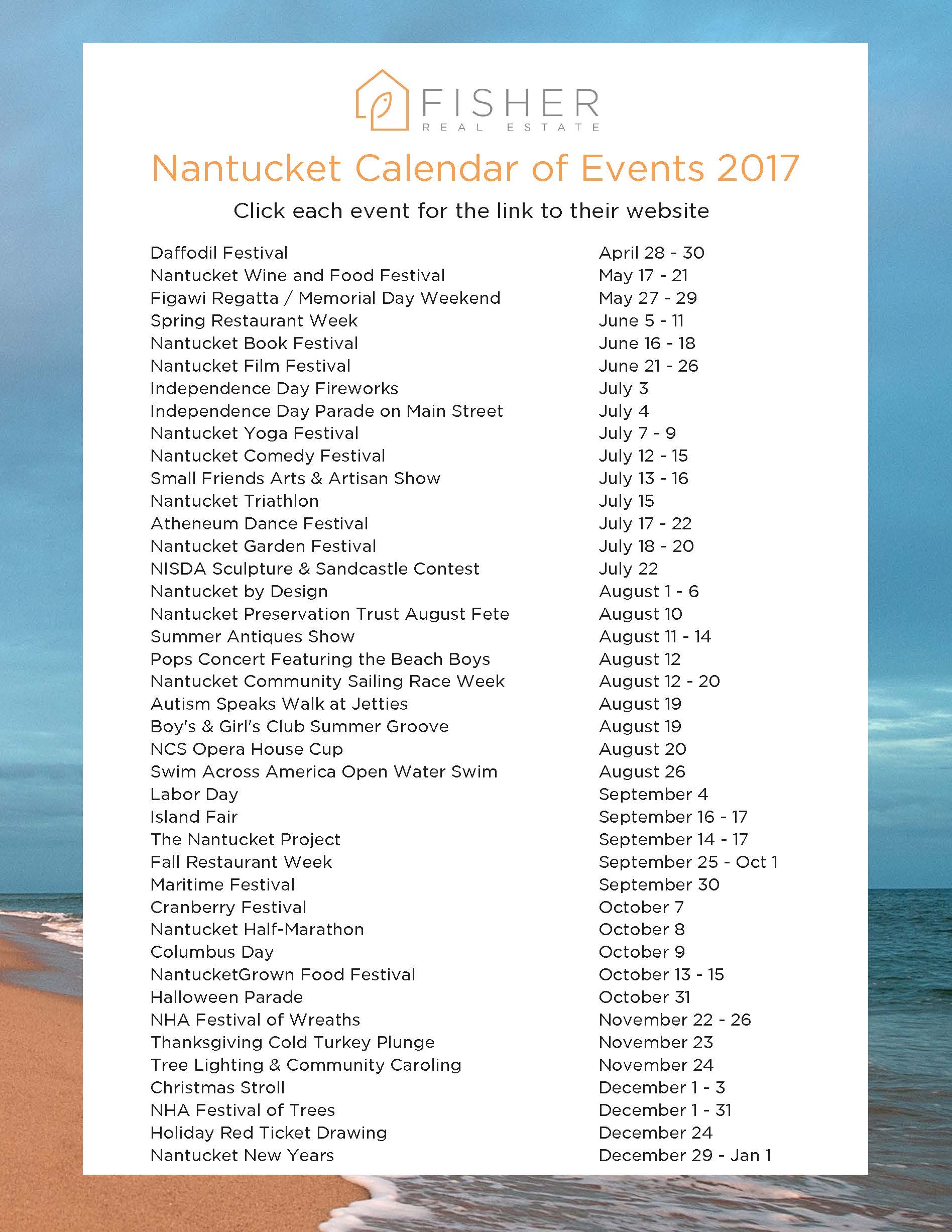 2017 Nantucket Events Calendar from Fisher Real Estate