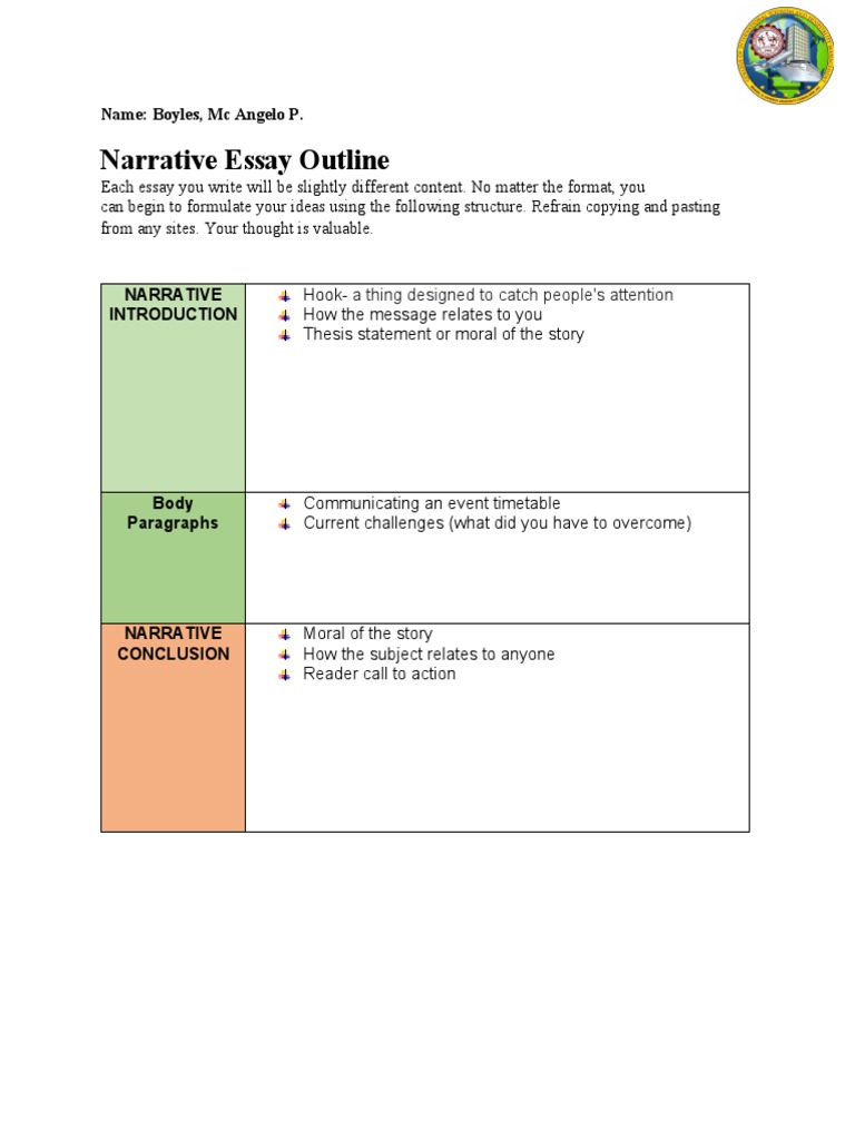 Narrative Essay Outline Example : r/CollegeHomeworkTips