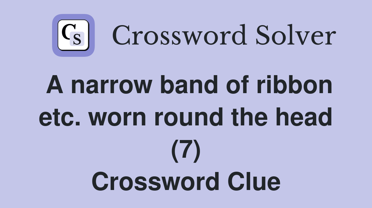 A narrow band of ribbon etc worn round the head (7) Crossword Clue