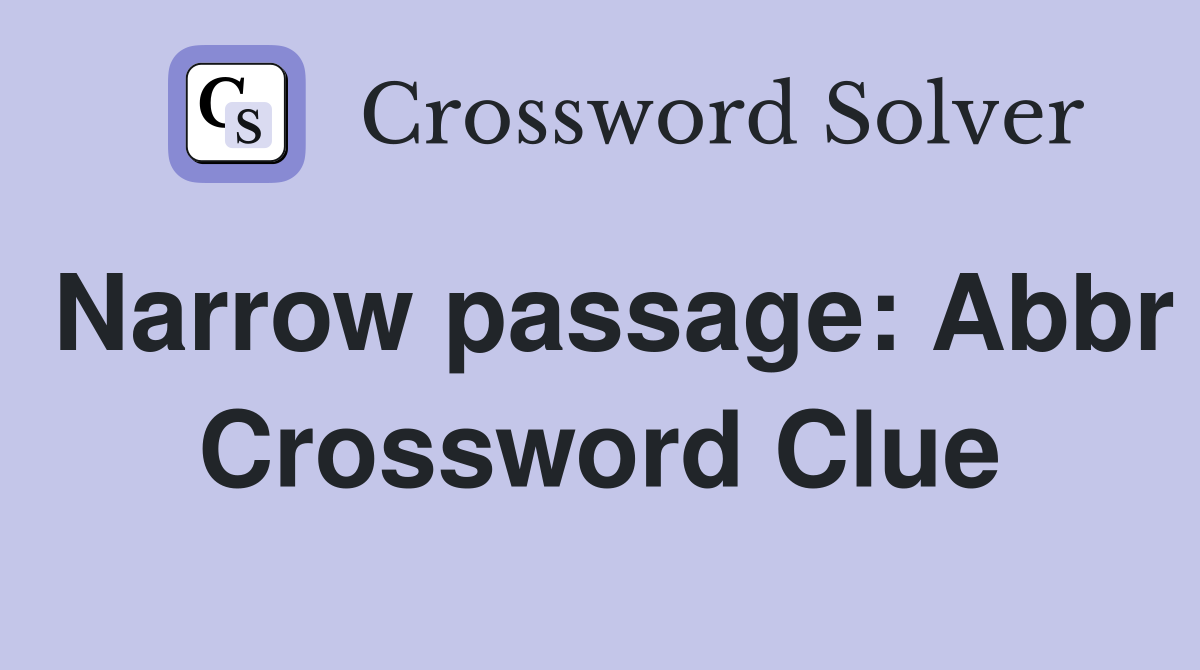 Narrow passage: Abbr Crossword Clue Answers Crossword Solver