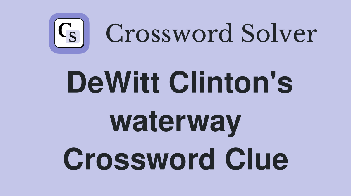 DeWitt Clinton #39 s waterway Crossword Clue Answers Crossword Solver