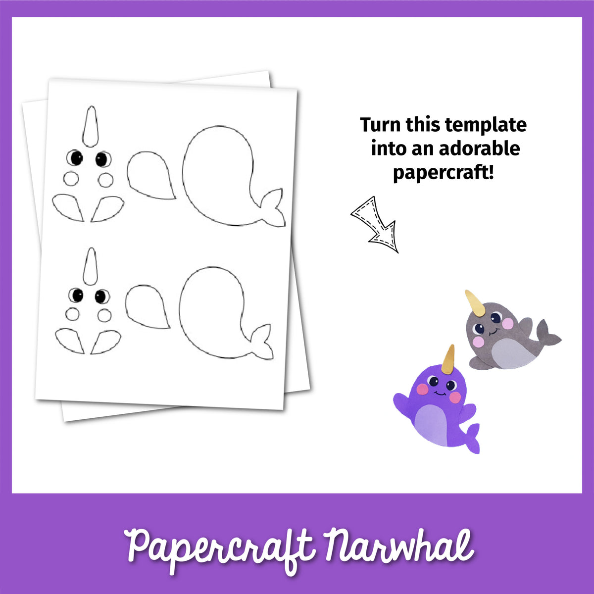 Narwhal Paper Craft Template Fun crafts for kids Kid friendly crafts