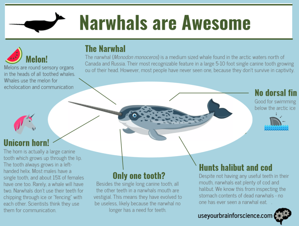 The tusks of narwhals are actually teeth that are inside out Narwhal