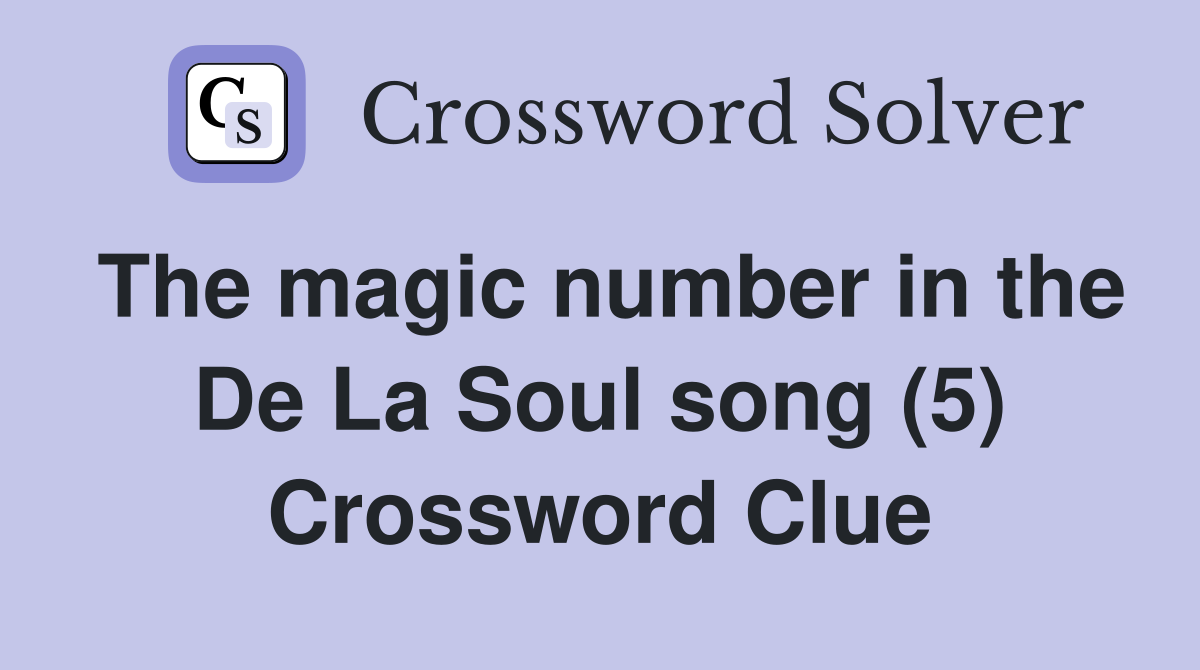 The magic number in the De La Soul song (5) Crossword Clue Answers