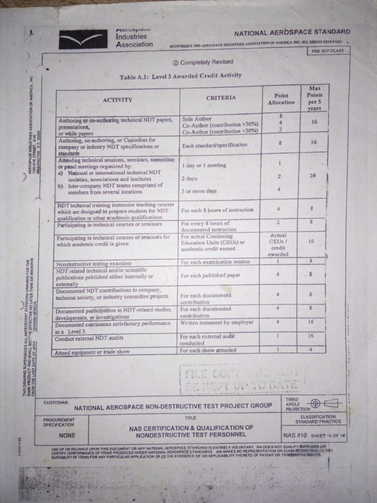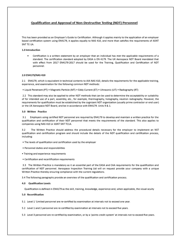 NAS 410 NDT Certification Requirements NDTTrainingOnline com