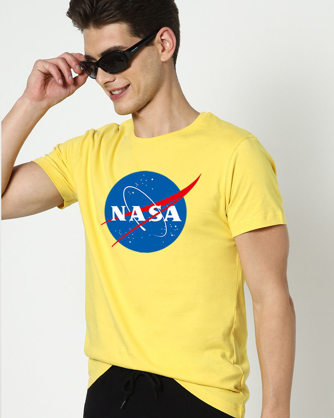 Buy Men #39 s Yellow NASA Meatball Logo T shirt Online at Bewakoof