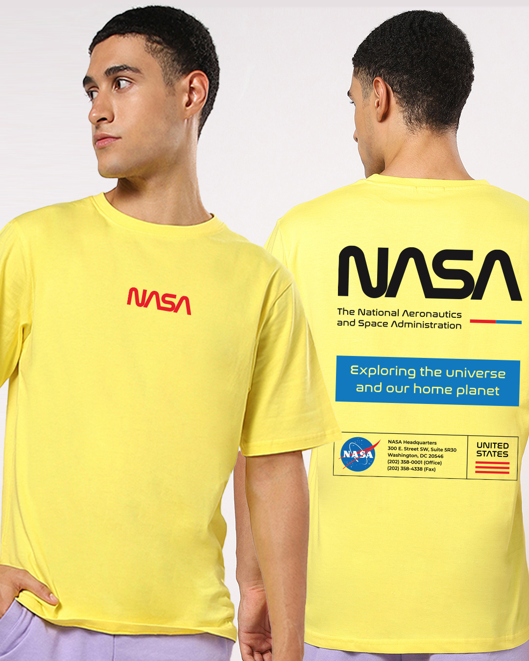 Buy Men #39 s Yellow NASA US Typography Oversized Fit T shirt Online at