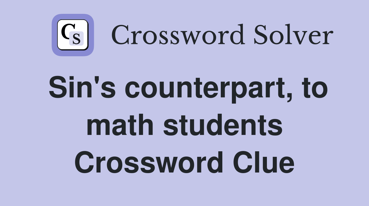 Sin #39 s counterpart to math students Crossword Clue Answers