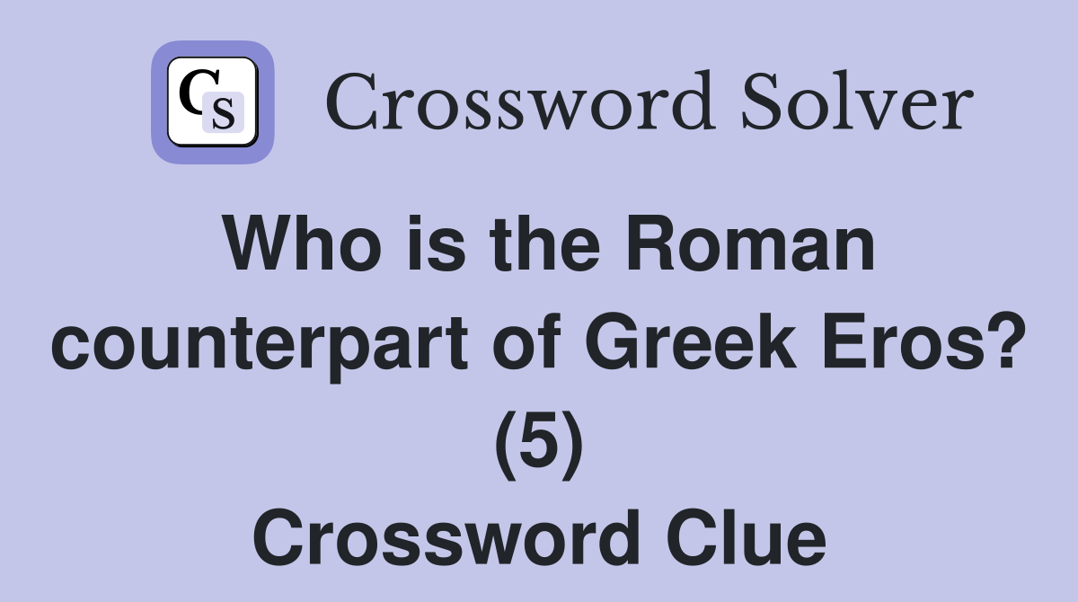 Who is the Roman counterpart of Greek Eros? (5) Crossword Clue