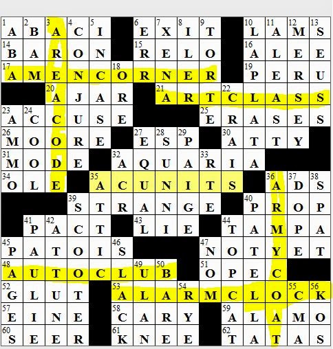 1015 22 NY Times Crossword 15 Oct 22 Saturday NYXCrossword com