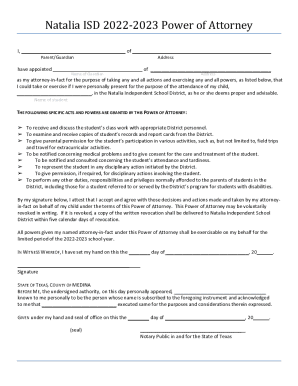 Fillable Online Natalia ISD 2022 2023 Power of Attorney Connect Suite