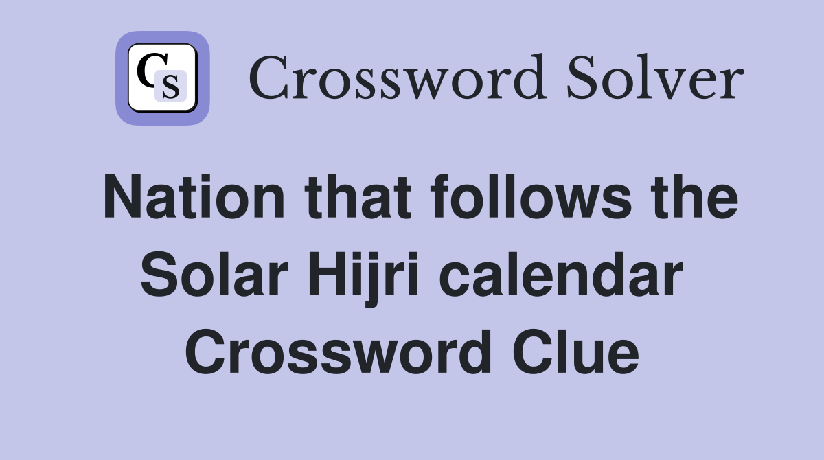 Nation that follows the Solar Hijri calendar Crossword Clue Answers