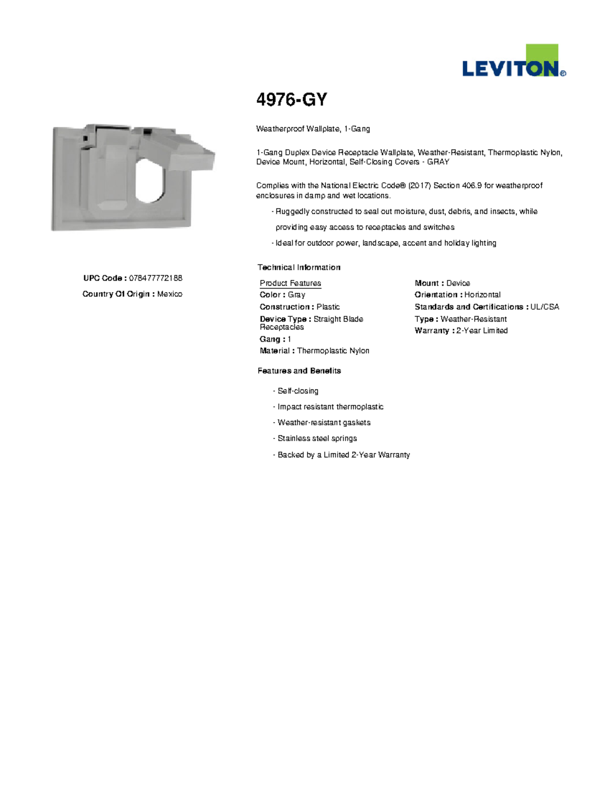Placa ip65 leviton sdsdfsdf UPC Code : 078477772188 Country Of
